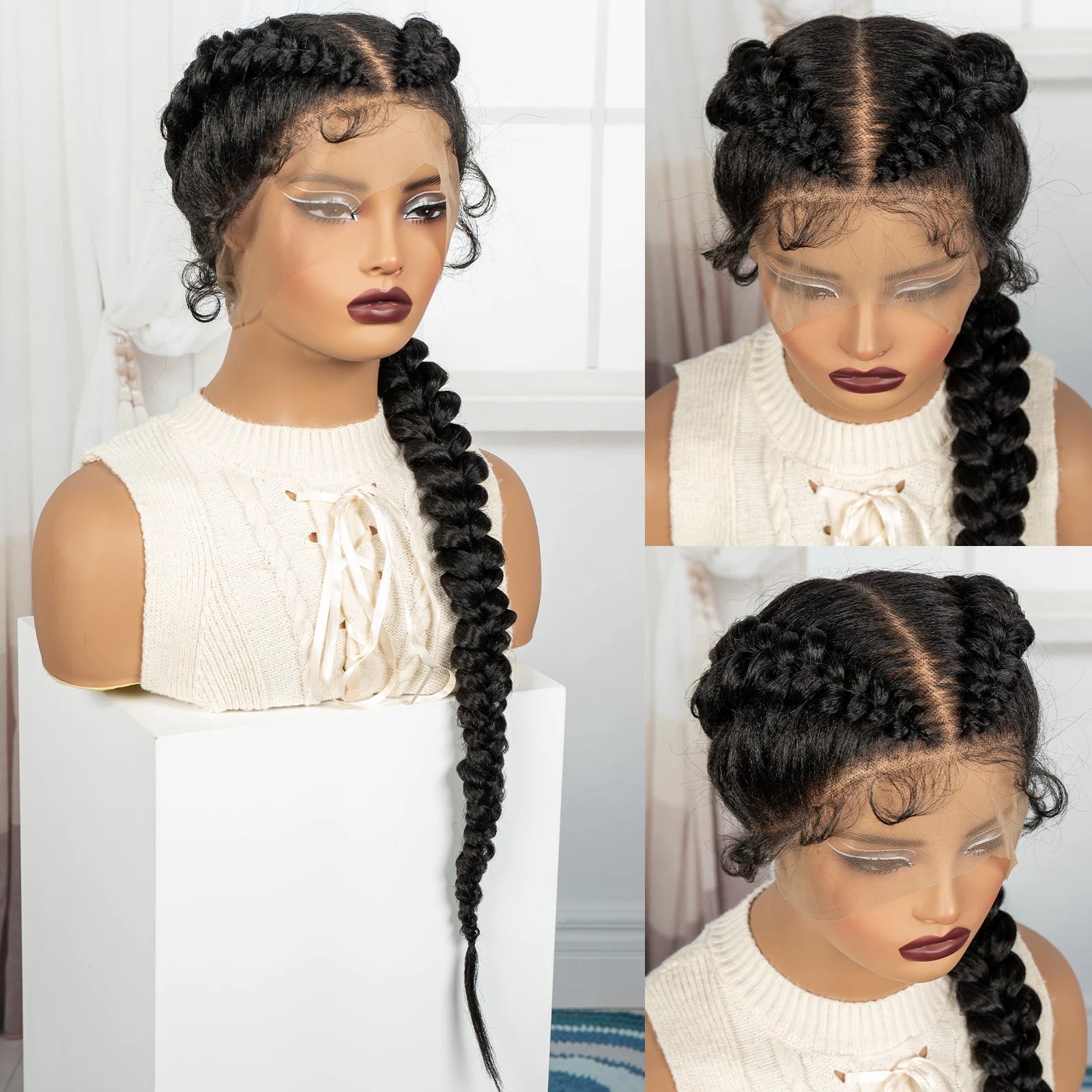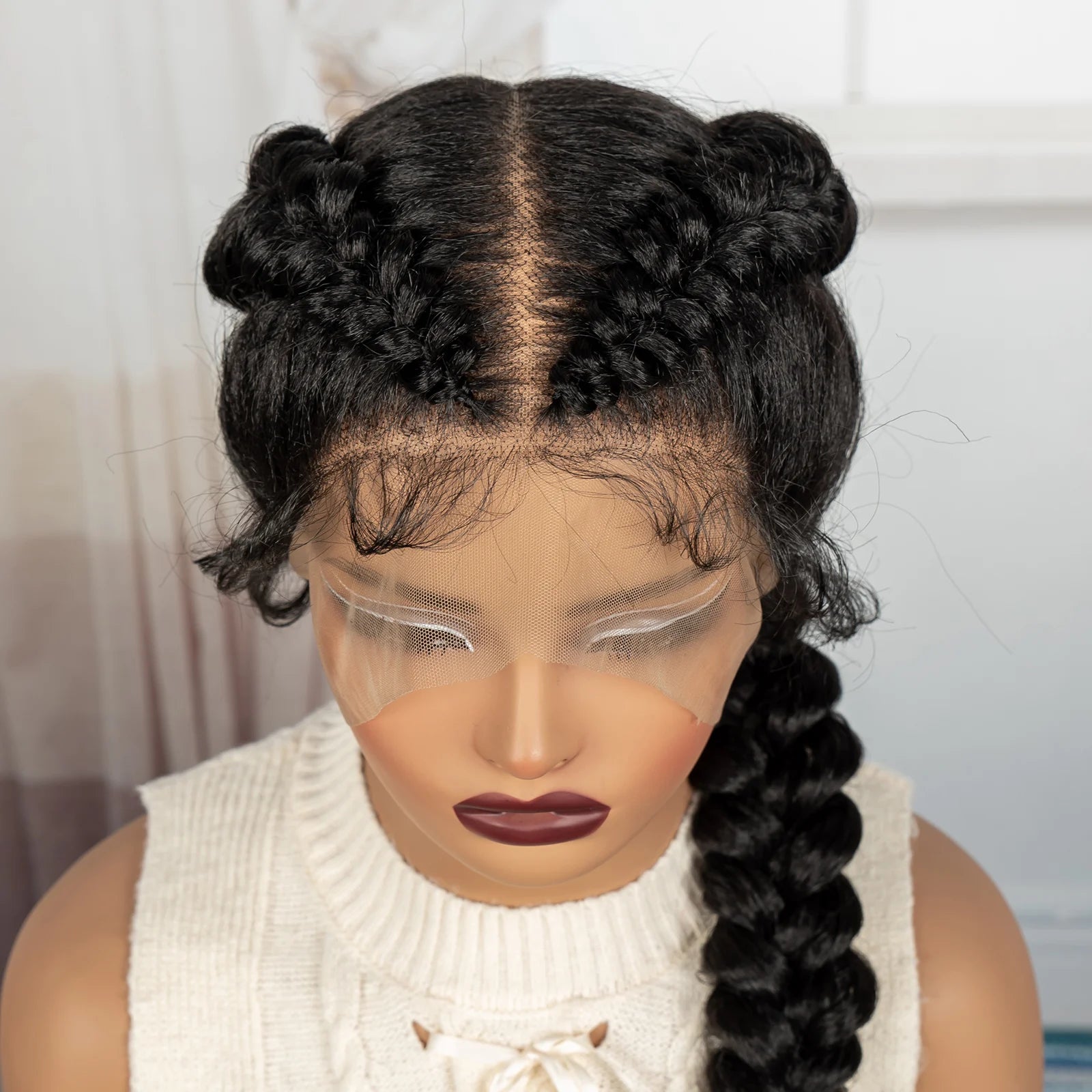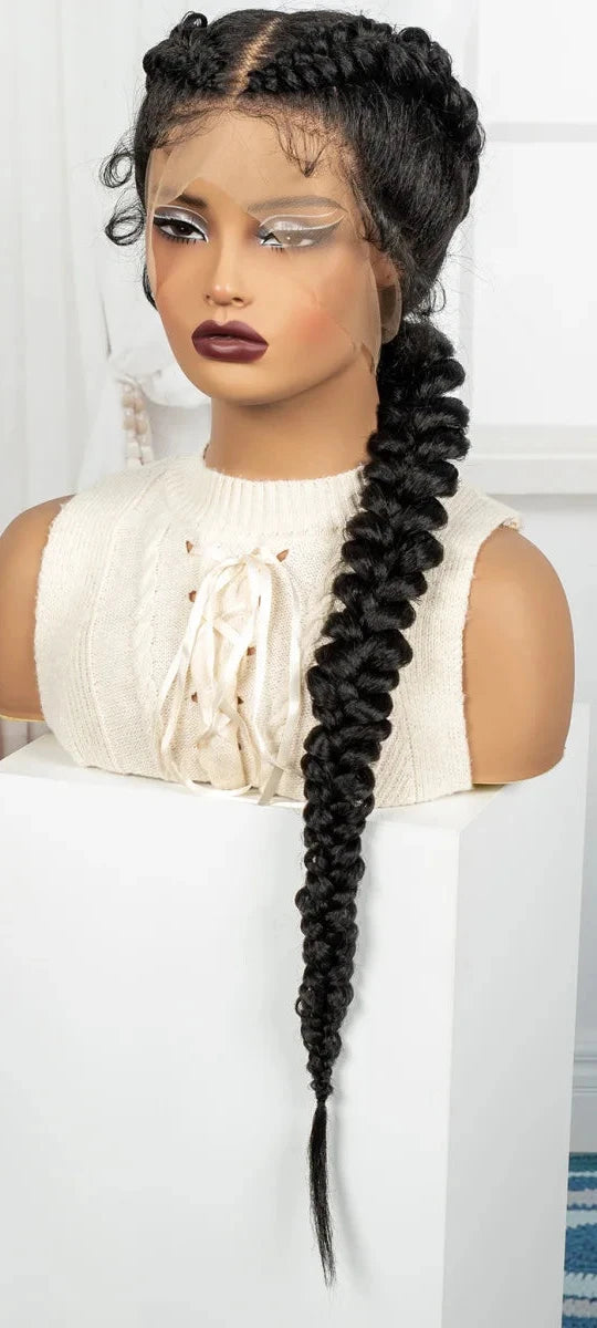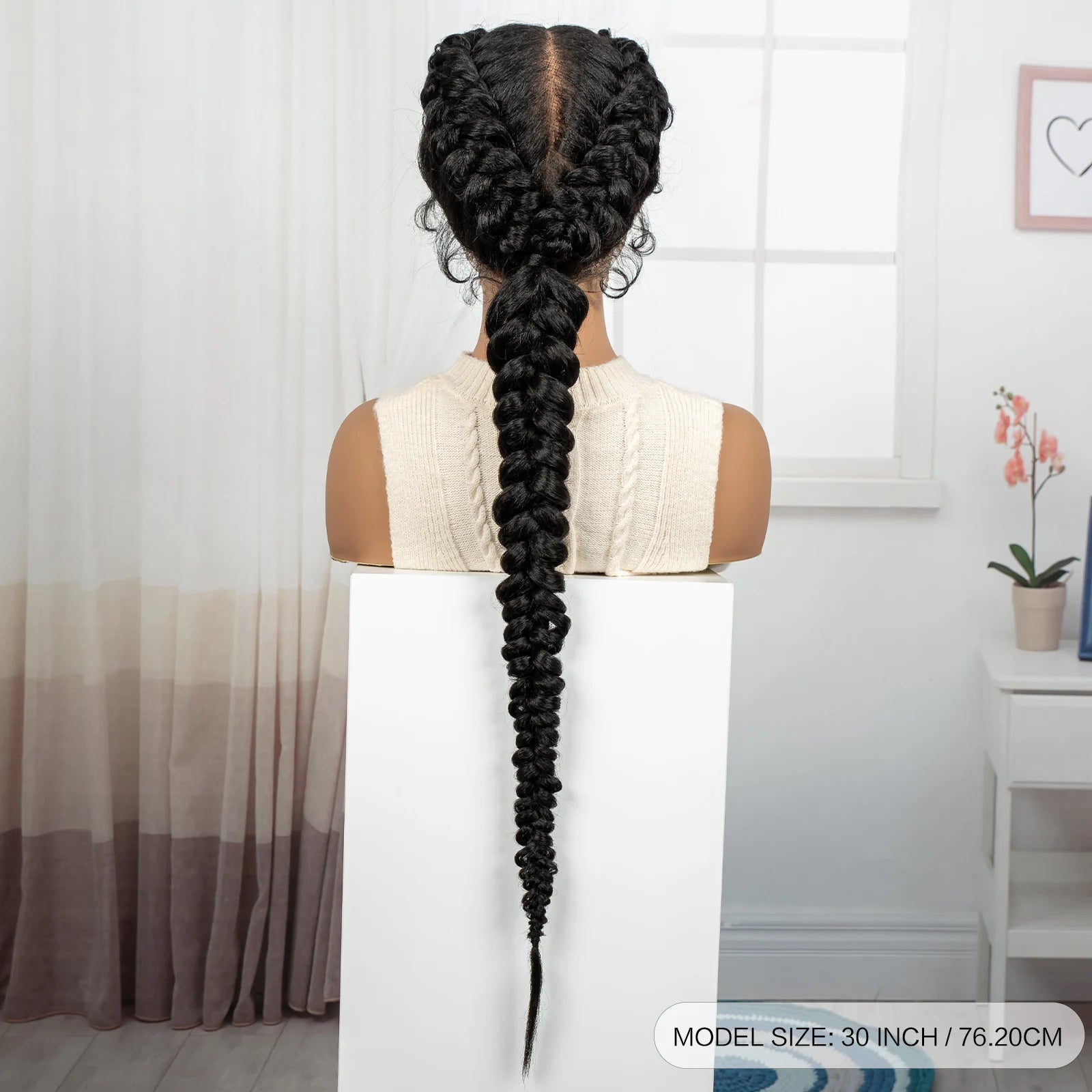 Natural Twisted Braided Lace Wig – 30” Synthetic Full Lace, Hand-Braided Look