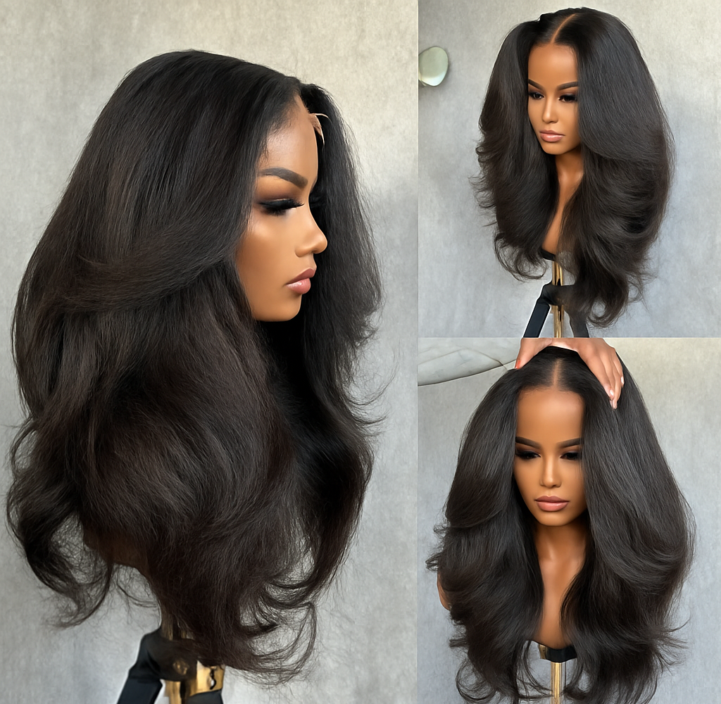 Elevate your style with our Yaki Wavy Full Lace Human Hair Wig, made from 100% premium Brazilian human hair for a soft, realistic texture that mimics freshly relaxed natural hair. This pre-plucked, silk-base wig delivers an ultra-natural look with beautiful, flowing waves that add body and shine.