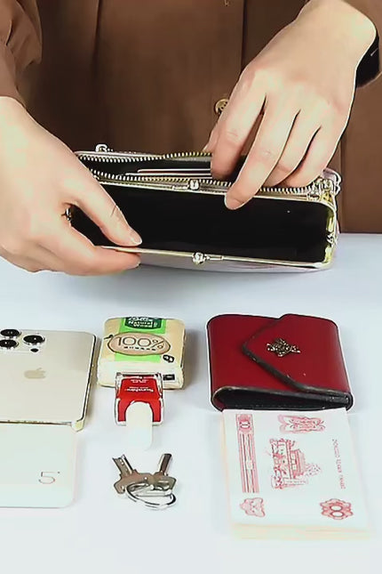 Den indre strukturen til den lille vesken: mørkt rom, seddelklips, vekslepenn, glidelåslomme, ID-penn, kortpenn, nøkkelpenn